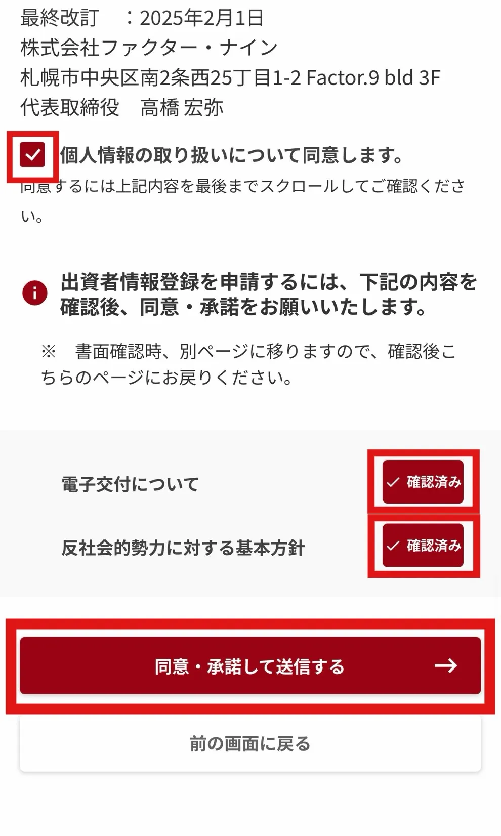 「プロジェクト概要」「物件情報」「運用情報」の全てに目を通し、書面も確認します。
