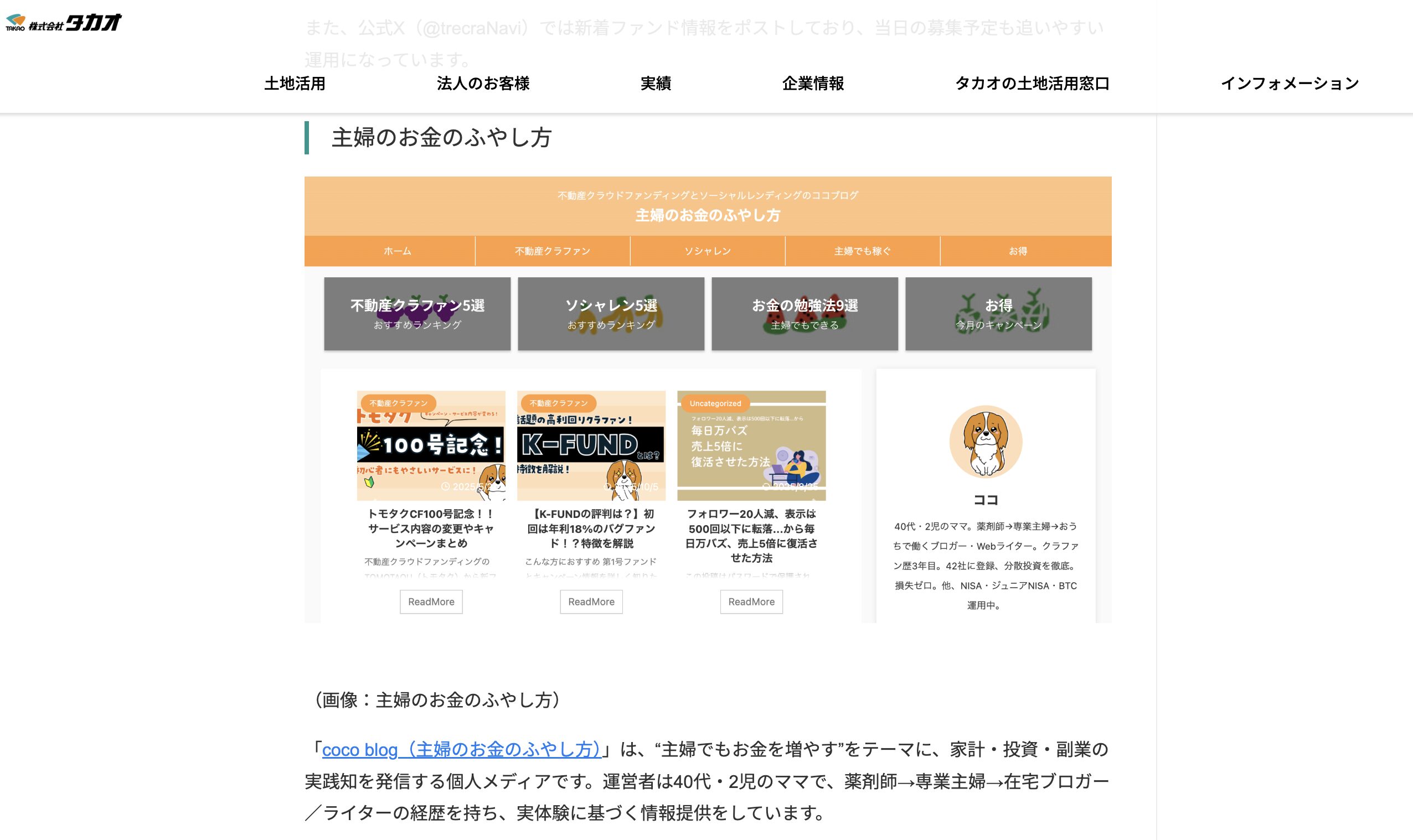株式会社タカオの運営するメディア「タカオの土地活用窓口」内の記事「不動産投資の成功をサポートする注目企業・メディアをご紹介」に当ブログが掲載されました。